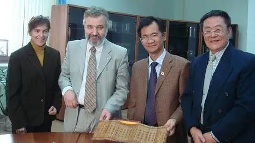 2008年9月,徐俊忠所长与李尚德教授二人对俄罗斯国立莫斯科大学哲学系进行了学术访问。双方进一步确定了“马克思主义与当代:中国和俄罗斯”的长期合作会议交流制度,并确定每两年分别在中国和俄罗斯召开一次会议。图为互赠礼品