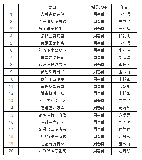 4月10日至5月11日,在周老师的精心安排和指导下,同志们结合自身专业,深入挖掘中华优秀传统文化中的廉洁文化资源,收集整理我国历史上有代表性的典范人物的生平、廉洁事迹和后世评价,汲取精华,创作20篇中国古代廉洁故事。