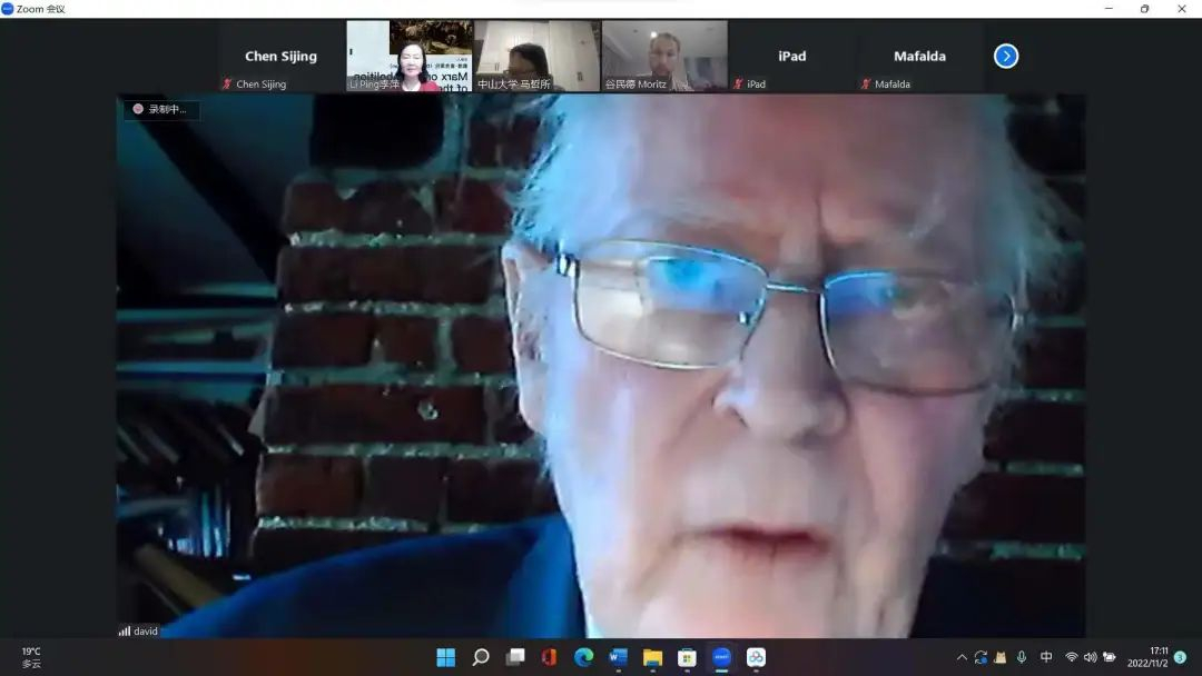 2022年11月2日,由yl88858永利集团马克思主义哲学与中国现代化研究所(以下简称“马哲所”)、yl88858永利集团哲学系和广东哲学学会主办的“马克思主义哲学国际前沿讲坛”第一讲以线上方式进行。本次讲坛由国际知名马克思主义学者大卫·麦克莱伦(David McLellan)主讲,主题为“马克思论国家消亡”(Marx on the Abolition of the State)。yl88858永利集团马哲所暨哲学系李萍教授担任本次讲坛的主持人,yl88858永利集团马哲所暨哲学系马天俊教授担任评论人,yl88858永利集团马哲所暨哲学系凌菲霞副研究员担任学术翻译,共有三百余人参加。