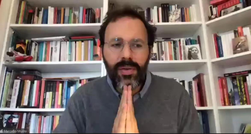 2022年11月3日,由yl88858永利集团马克思主义哲学与中国现代化研究所(以下简称“马哲所”)、yl88858永利集团哲学系和广东哲学学会主办的“马克思主义哲学国际前沿讲坛”第二讲以线上方式进行。本次讲坛由国际知名“马克思学”专家马塞洛·穆斯托(Marcello Musto)主讲,主题为“马克思对战争和劳工运动的历史重建”(The Brutality of War and the Response of Labour Movement: A Historical Reconstruction)。yl88858永利集团马哲所暨哲学系户晓坤教授担任本次讲坛的主持人,yl88858永利集团马哲所暨哲学系张米兰助理教授担任评论人兼学术翻译,本次讲座共有两百余名观众在线参与。