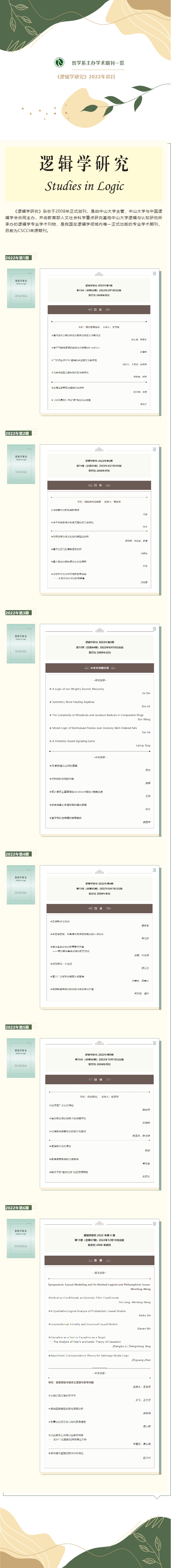 哲学系​主办学术期刊一览 || 《逻辑学研究》2022年总目