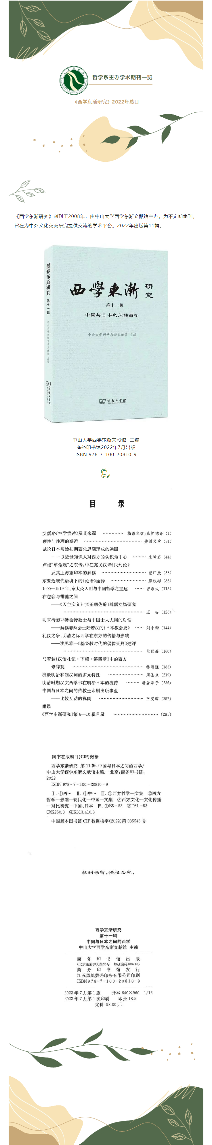 哲学系主办学术期刊一览 ||《西学东渐研究》2022年总目