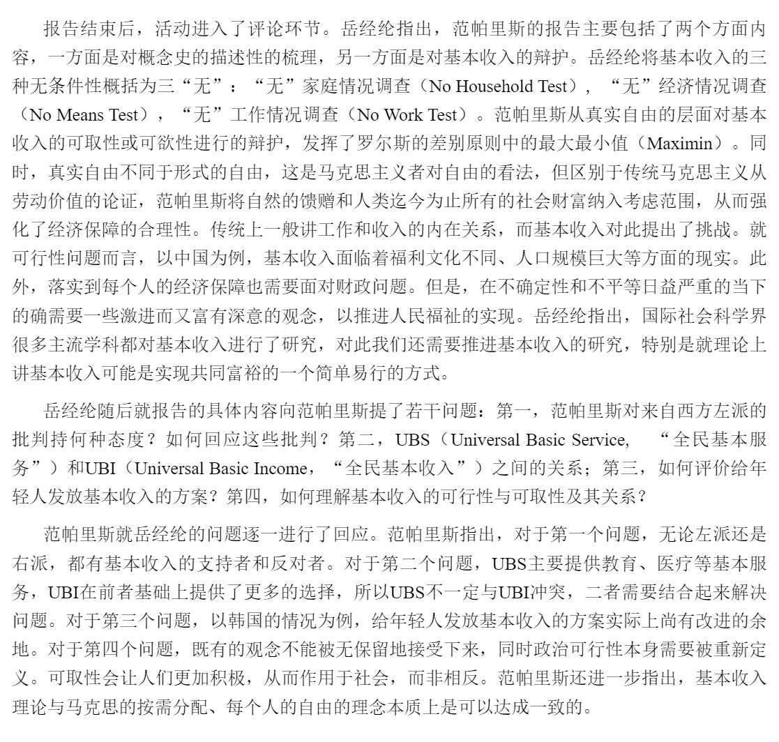 实践哲学讲堂第36期纪要|菲利普·范帕里斯:基本收入:证成与展望