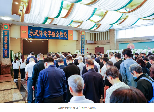 全体人员向李锦全教授三鞠躬,神情凝重哀戚,逐一瞻仰李锦全教授遗容作最后告别,并对家属表达深切慰问。