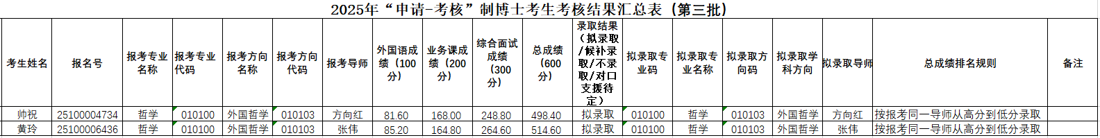 哲学系2025年“申请-考核”制博士研究生面试结果公示(第三批)