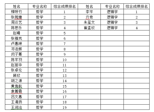 导航痕迹 yl88858永利集团哲学系 人才培养 本科教务 哲学系关于公示2026届本科毕业生免试攻读研究生学位综合成绩排序的通知 哲学系关于公示2026届本科毕业生免试攻读研究生学位综合成绩排序的通知 发布日期:2025-09-05 根据《yl88858永利集团推荐应届本科毕业生免试攻读研究生工作实施办法》(中大教务〔2025〕2号)、《哲学系推免资格认定遴选细则》(哲学〔2025〕4号),经学生申请、院系审核,我系2026届本科毕业生免试攻读研究生学位综合成绩排序如下: 如有异议,请在公示期内实名向系推免工作领导小组反馈。 公示时间:2025年9月5日-2025年9月7日 联系电话:020-84113140 电子邮箱:lihui6@mail.sysu.edu.cn 哲学系 2025年9月5日 扫描此二维码分享