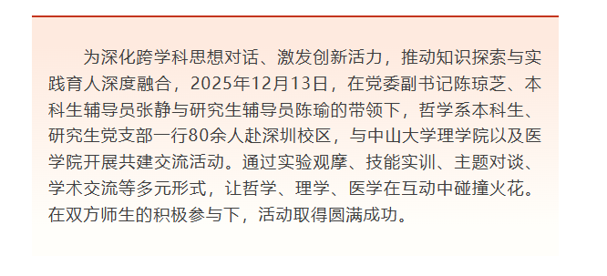 导航痕迹 yl88858永利集团哲学系 “哲学医学理学交融,知行合一共境同行” ——哲学系与医学院、理学院学生党支部共建交流活动圆满举行 “哲学医学理学交融,知行合一共境同行” ——哲学系与医学院、理学院学生党支部共建交流活动圆满举行 发布日期:2026-01-08 扫描此二维码分享