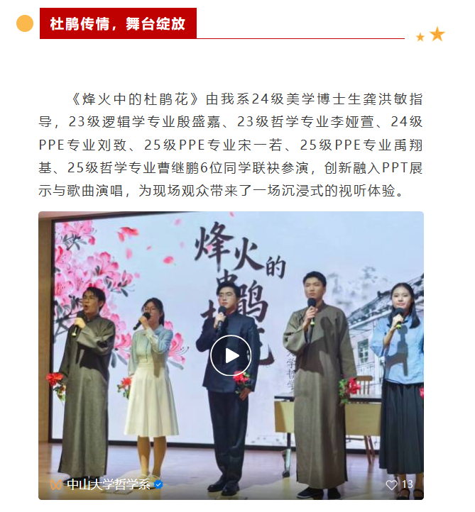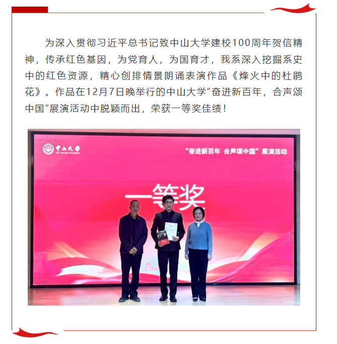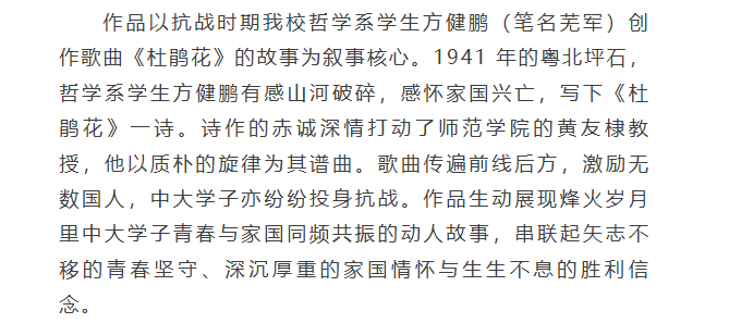 喜报 | 我系《烽火中的杜鹃花》荣获学校“奋进新百年,合声颂中国”展演活动一等奖