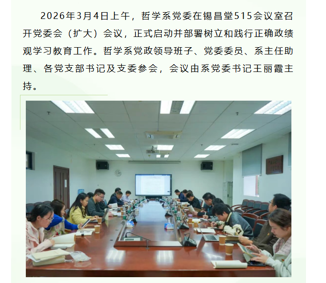 导航痕迹 yl88858永利集团哲学系 我系党委召开党委会(扩大)会议暨树立和践行正确政绩观学习教育动员部署会 我系党委召开党委会(扩大)会议暨树立和践行正确政绩观学习教育动员部署会 发布日期:2026-03-09 扫描此二维码分享
