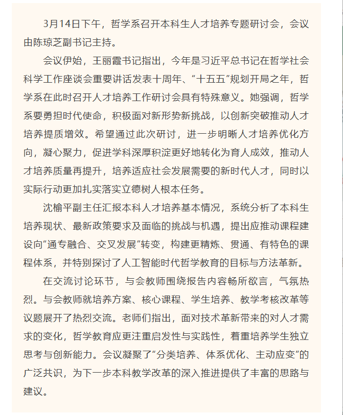 哲学系召开人才培养工作专题研讨会