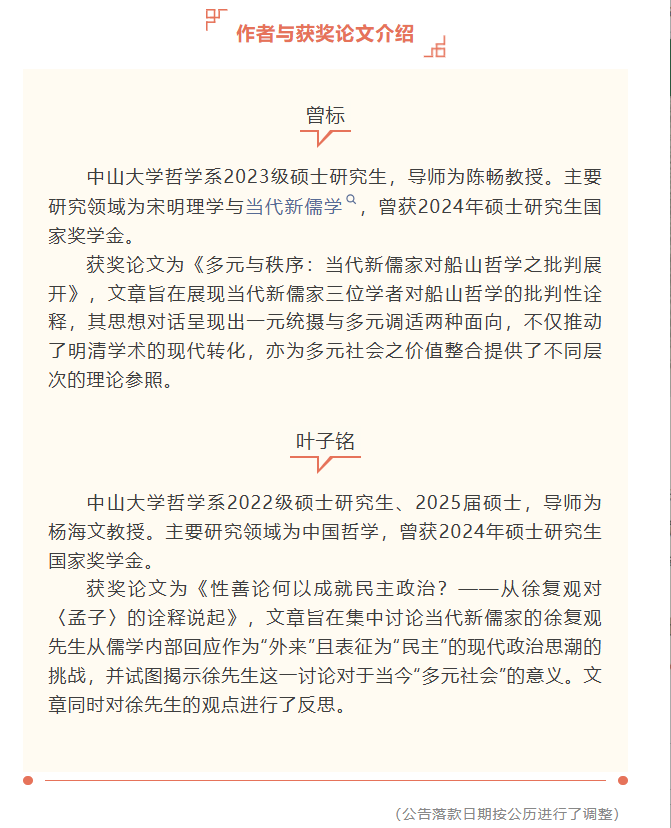 导航痕迹 yl88858永利集团哲学系 喜讯丨我系研究生曾标、叶子铭获“当代新儒家青年学者研究奖” 喜讯丨我系研究生曾标、叶子铭获“当代新儒家青年学者研究奖” 发布日期:2026-03-24 扫描此二维码分享