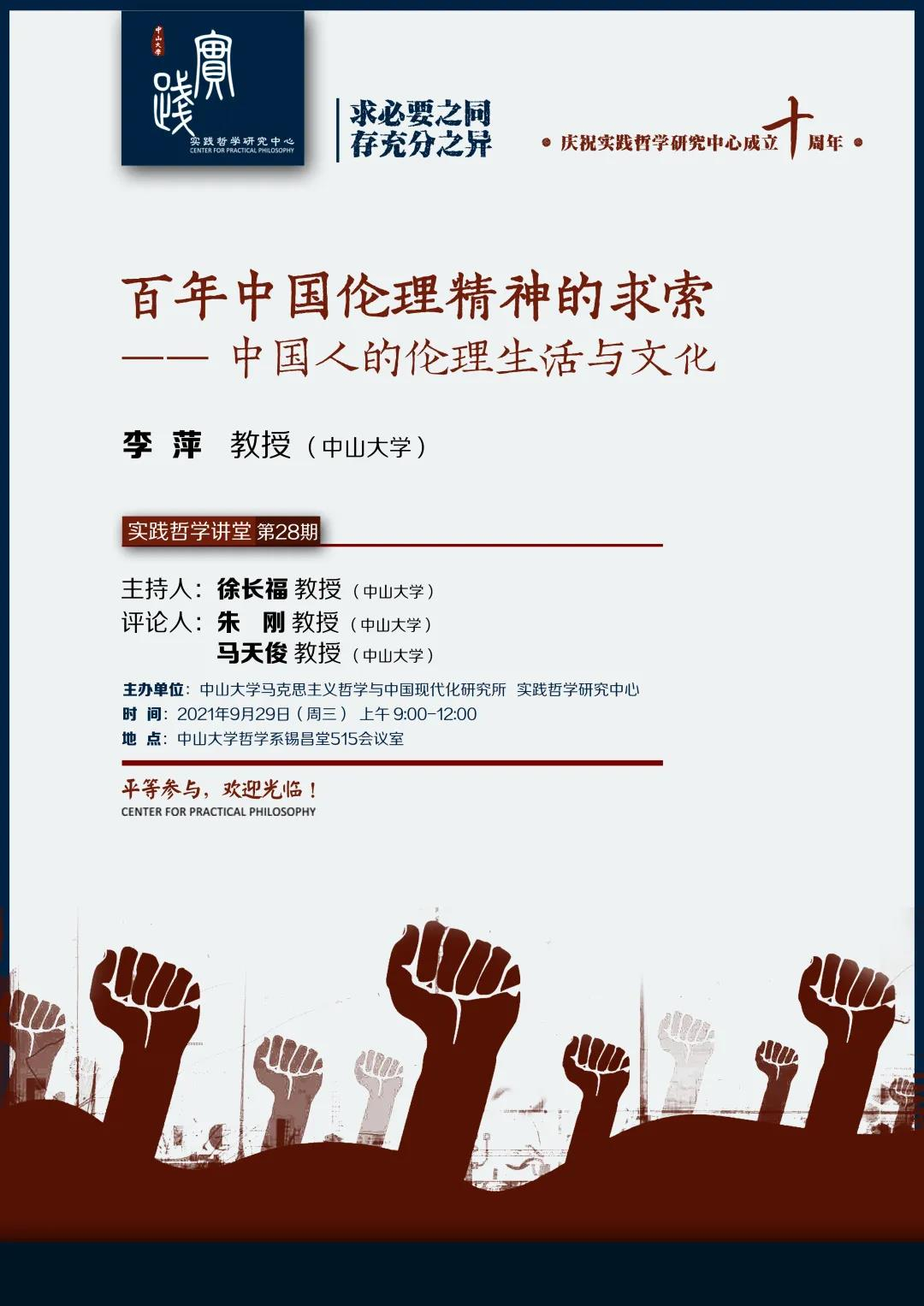 实践哲学讲堂预告 | 李萍:百年中国伦理精神的求索——中国人的伦理生活与文化