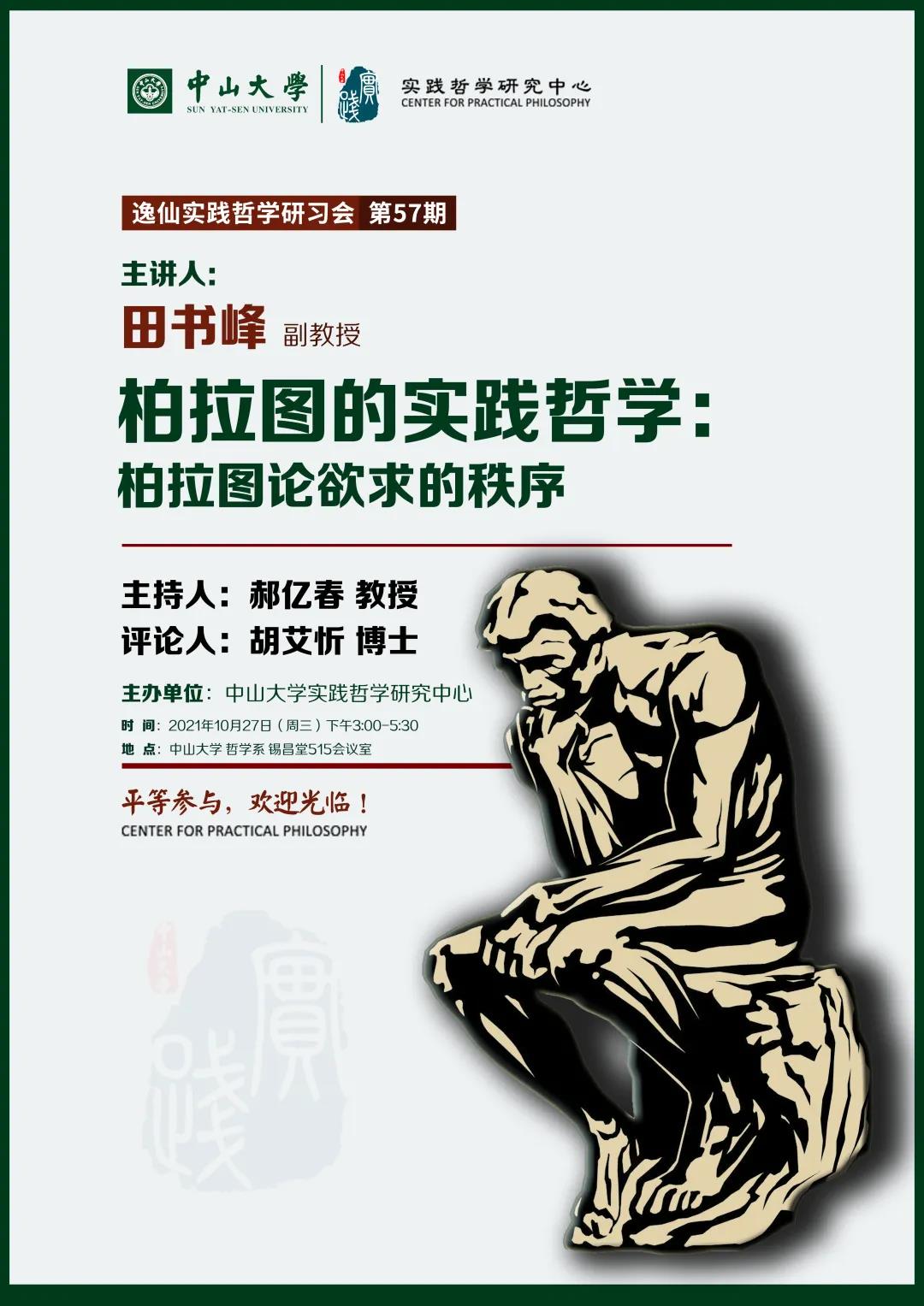 逸仙实践哲学研习会预告 | 田书峰:柏拉图的实践哲学:柏拉图论欲求的秩序
