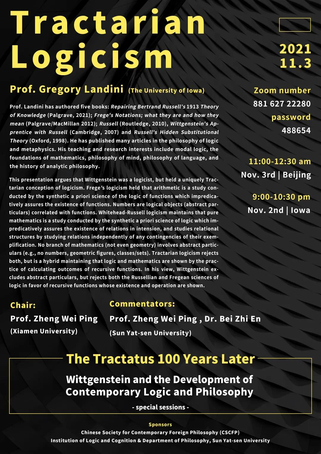 讲座预告 | Gregory Landini:Tractarian logicism yl88858永利集团哲学系 2021-11-02 22:58