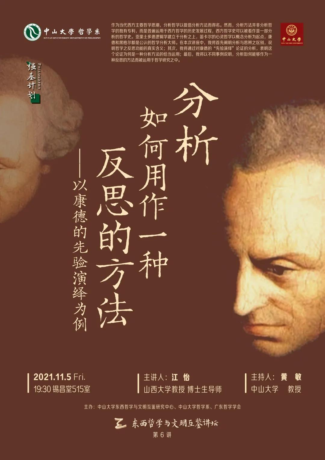 东西哲学与文明互鉴讲坛预告 | 江怡:分析如何用作一种反思的方法——以康德的先验演绎为例