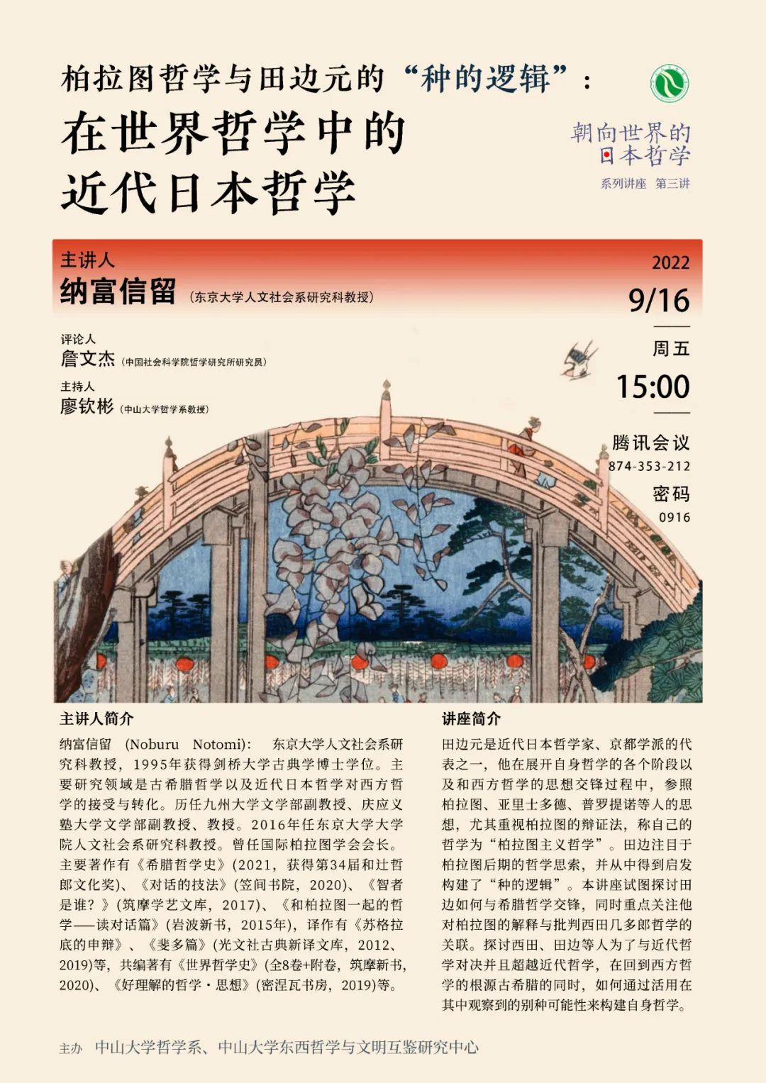 “朝向世界的日本哲学”系列讲座第三讲预告 |柏拉图哲学与田边元的“种的逻辑”:在世界哲学中的近代日本哲学