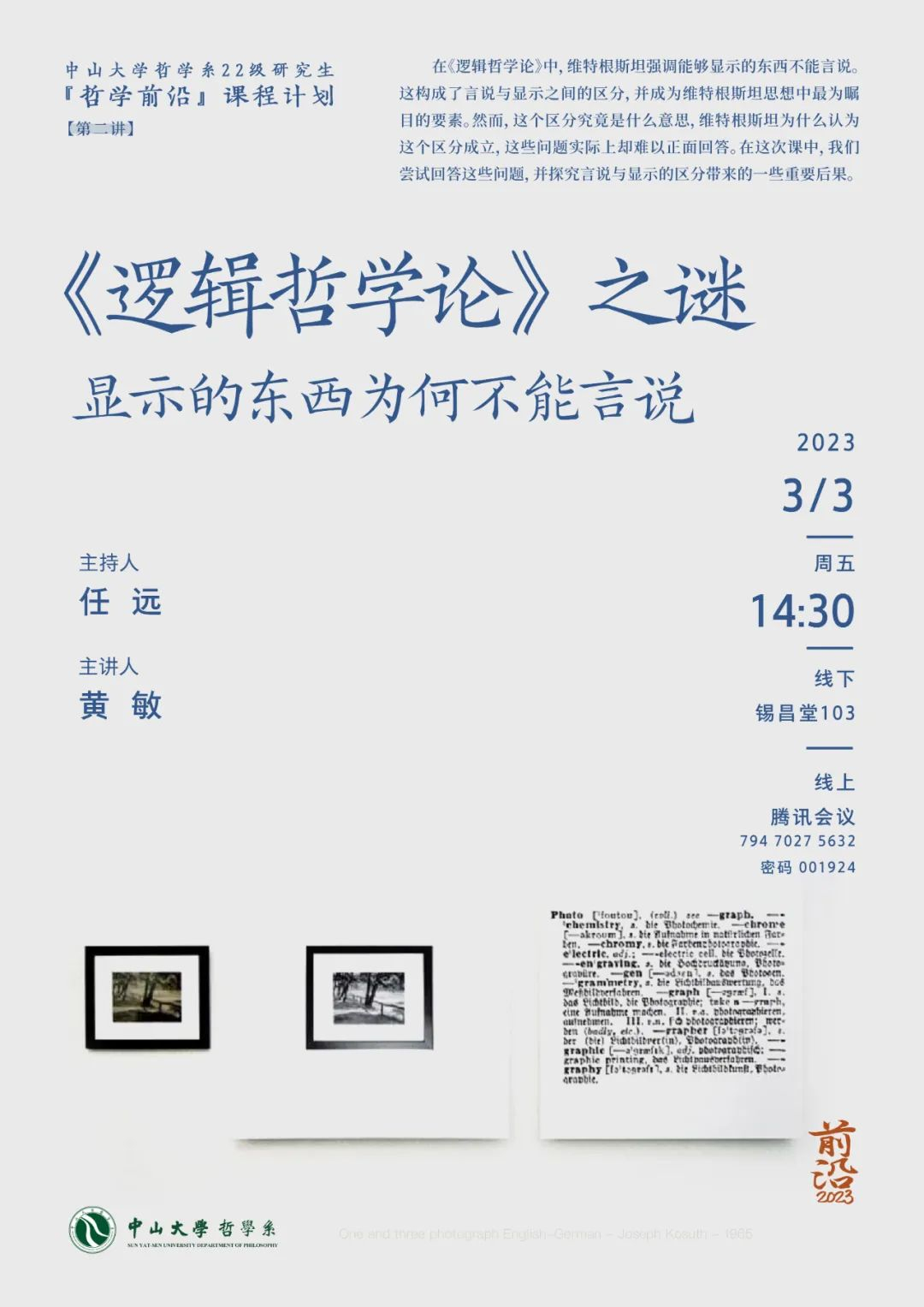 “哲学前沿”课程第二讲预告|黄敏:《逻辑哲学论》之谜——显示的东西为何不能言说