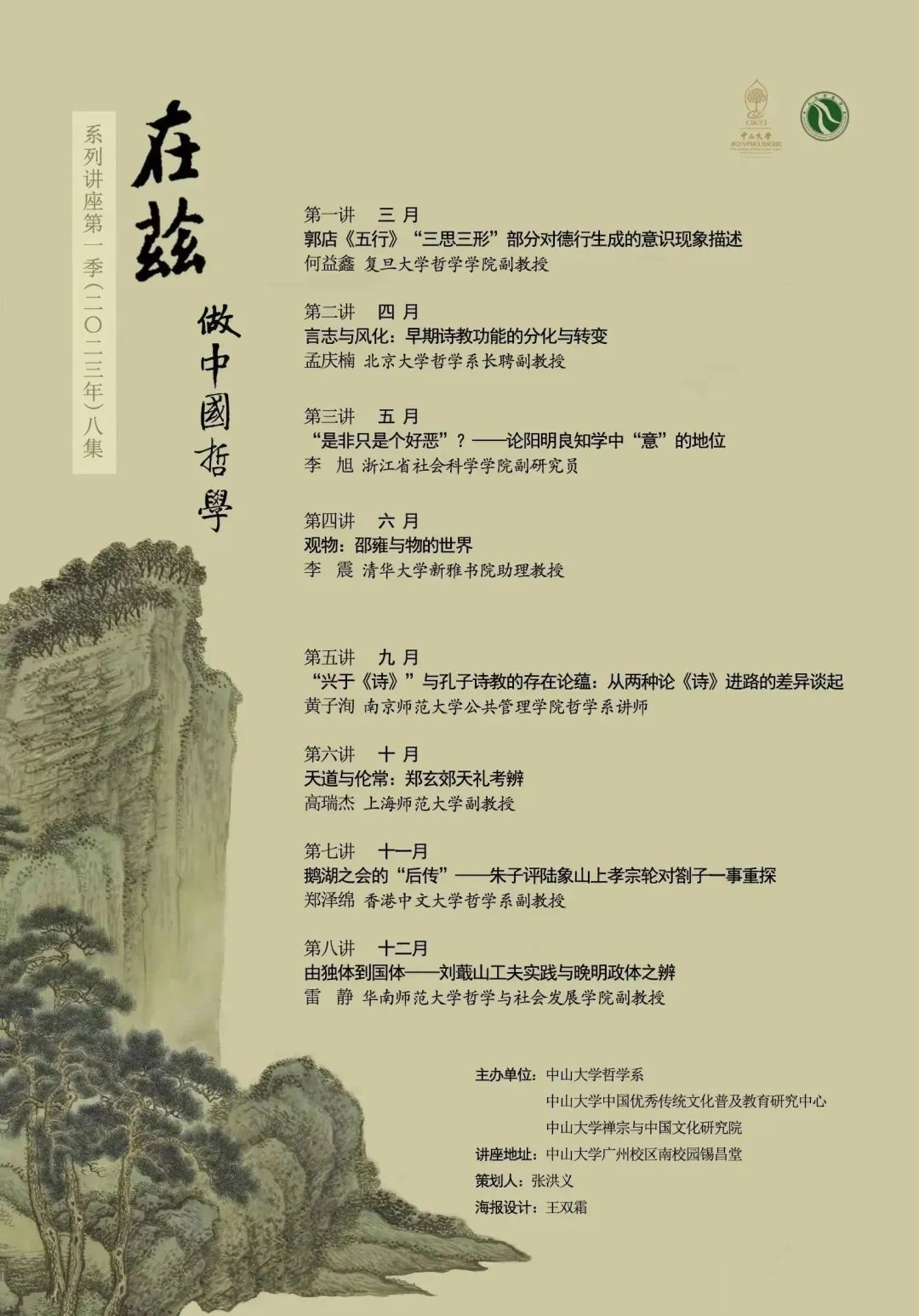yl88858永利集团哲学系中国哲学方向学术团队,在陈少明老师倡导的“做中国哲学”理念的引导下,抱持中西哲学会通的思想追求,深入体贴哲学根本问题,细密研读涵玩中国哲学经典,已推出“经典与解释”系列学术研究成果,在海内外学术界产生积极影响。近些年,国内一批青年学者成长起来,他们或者以新理念新视角或者结合新材料新方法,在各自研究领域做出原创性学术成果,一定程度上契合“做中国哲学”的理念、属于“经典与解释”的范围。因此,我们创建“在兹·做中国哲学”系列讲座平台,以期进一步推动“做中国哲学”多元路径的探索。我们将在2023年推出第一季“在兹·做中国哲学”系列讲座,本年度内计划邀请八位年轻学者,就“中国哲学史”上八个主题,开展八次讲座。从2024年开始,系列讲座将以专题内容展开。