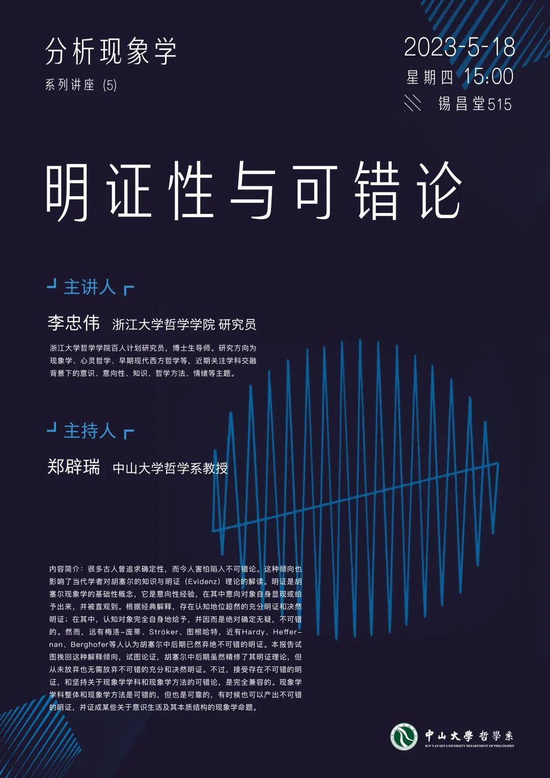 分析现象学系列讲座预告|李忠伟:明证性与可错论
