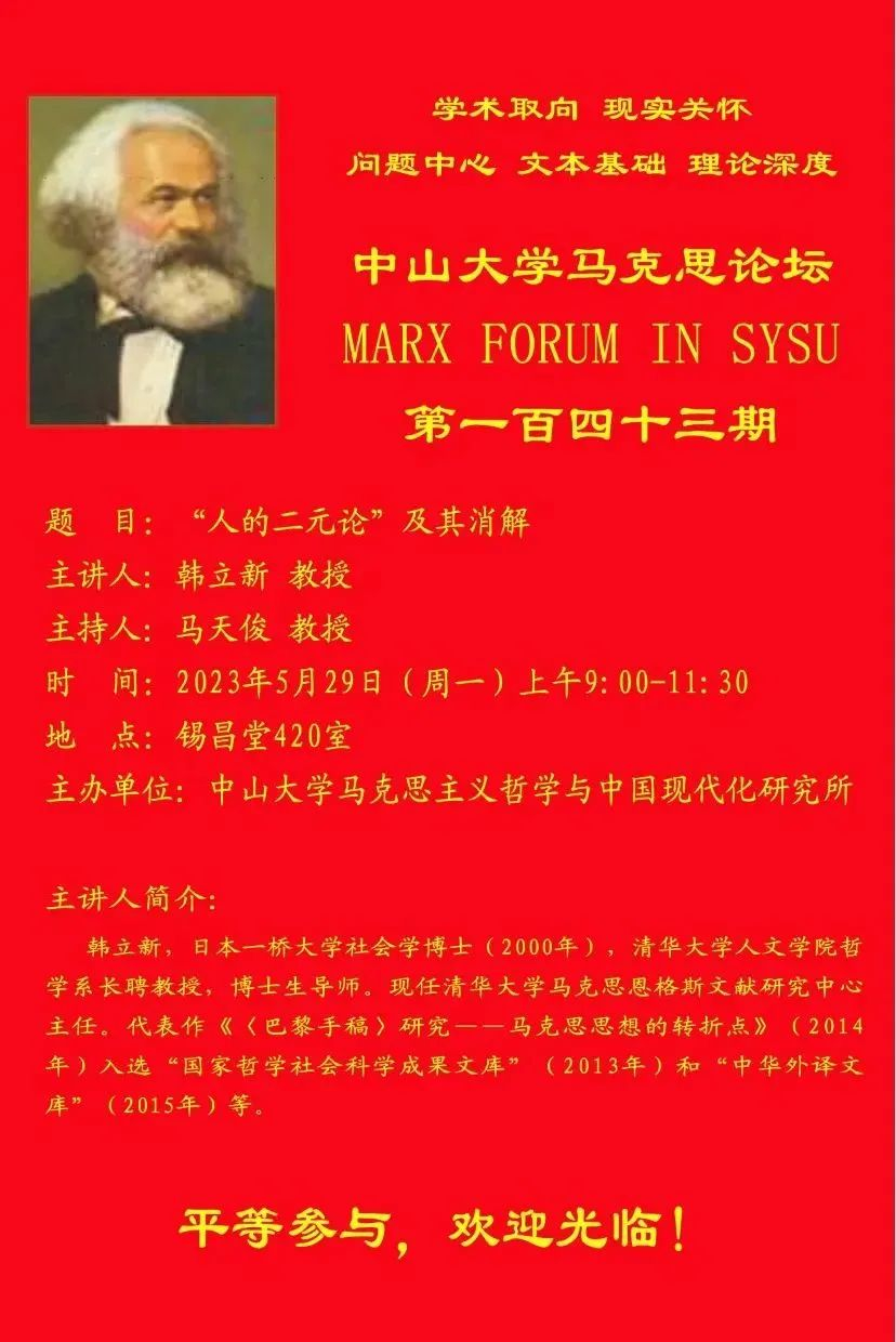 yl88858永利集团马克思论坛第143期预告 | 韩立新:“人的二元论”及其消解