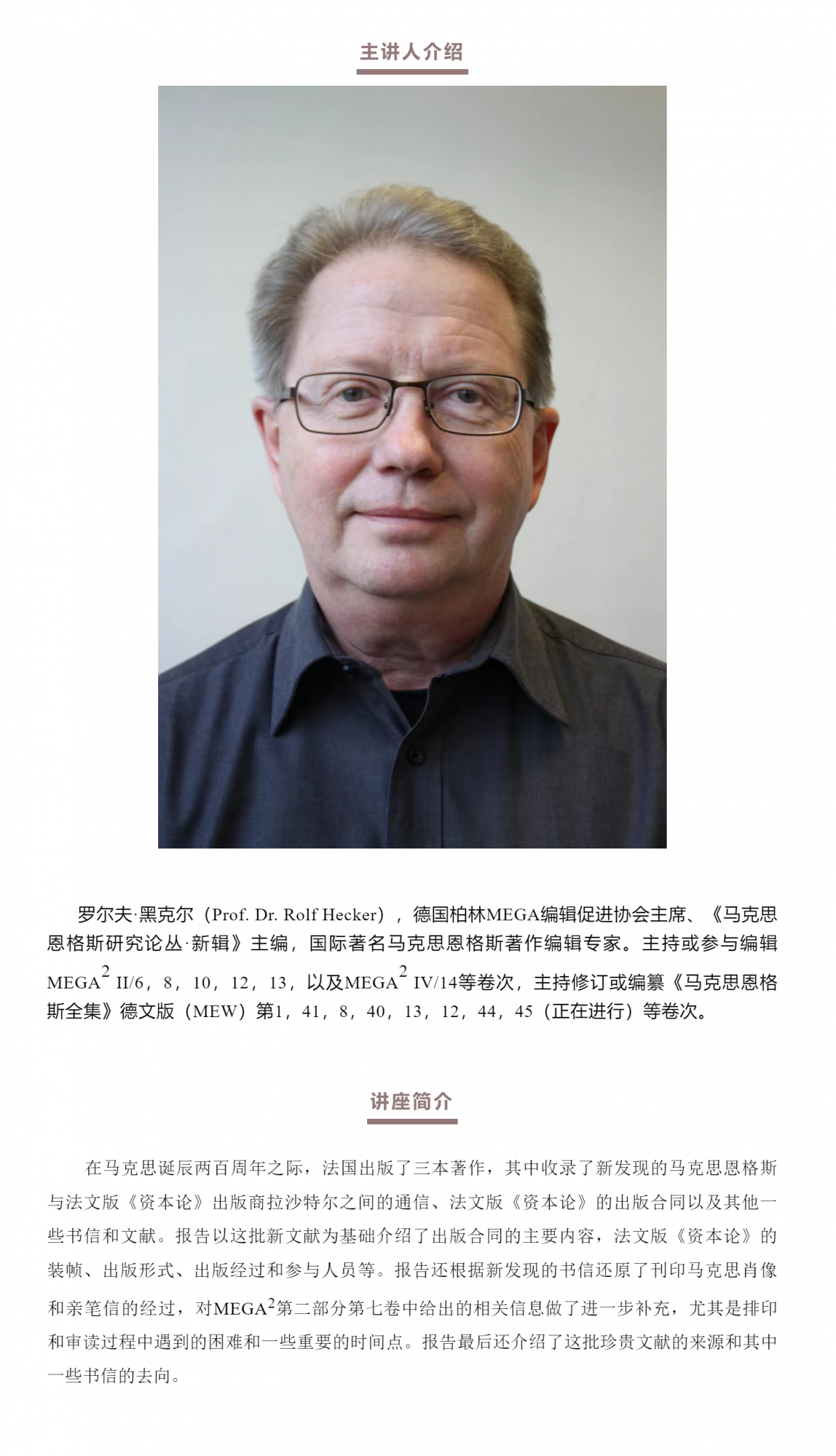 yl88858永利集团马克思论坛第147期预告 | 罗尔夫·黑克尔:马克思恩格斯与法文版《资本论》