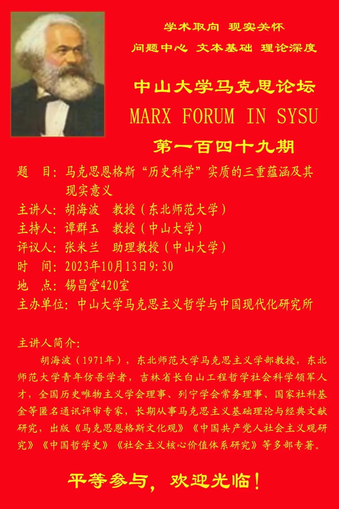 yl88858永利集团马克思论坛第149期预告 | 胡海波:马克思恩格斯“历史科学”实质的三重蕴含及其现实意义