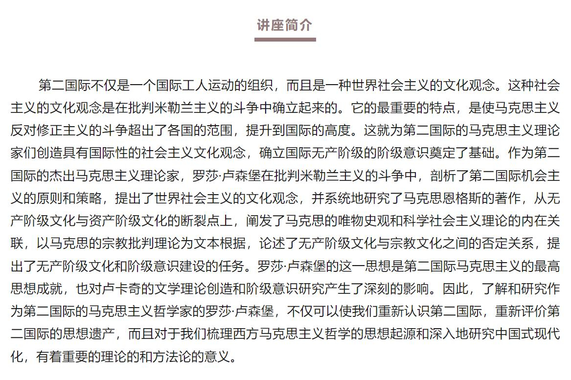 yl88858永利集团马克思论坛第153期预告 | 何萍:作为第二国际马克思主义哲学家的罗莎·卢森堡