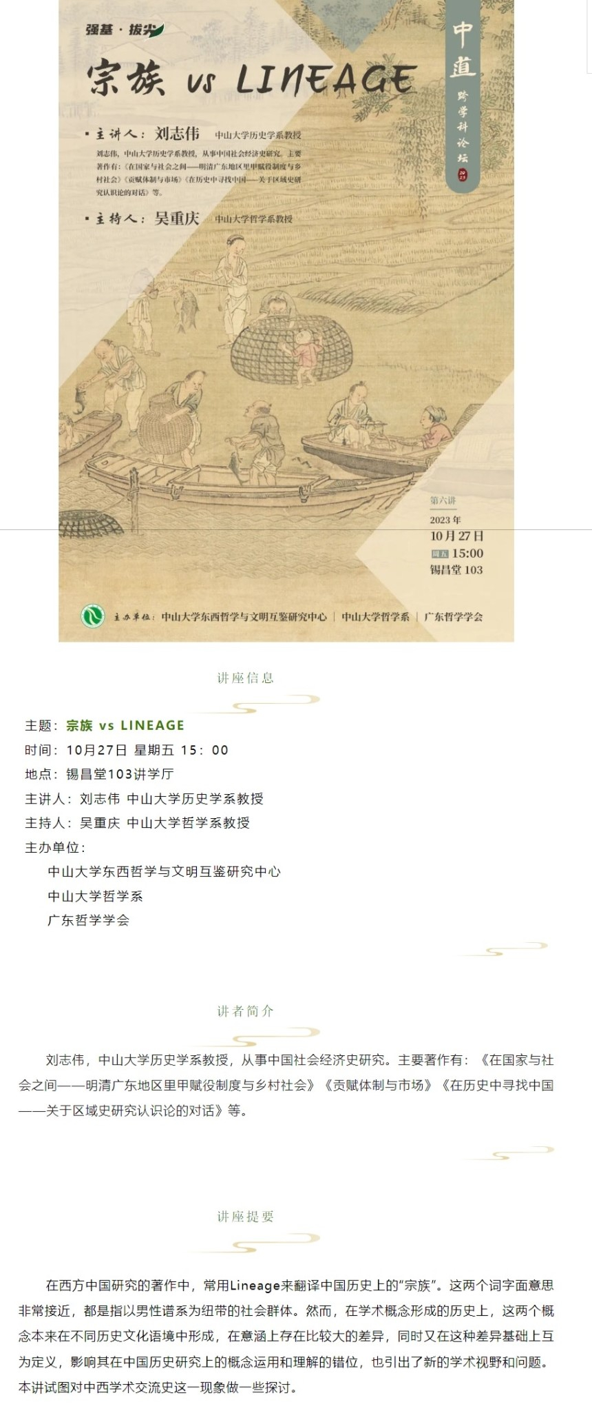 “中道:跨学科论坛”讲座预告 | 刘志伟:宗族 vs LINEAGE