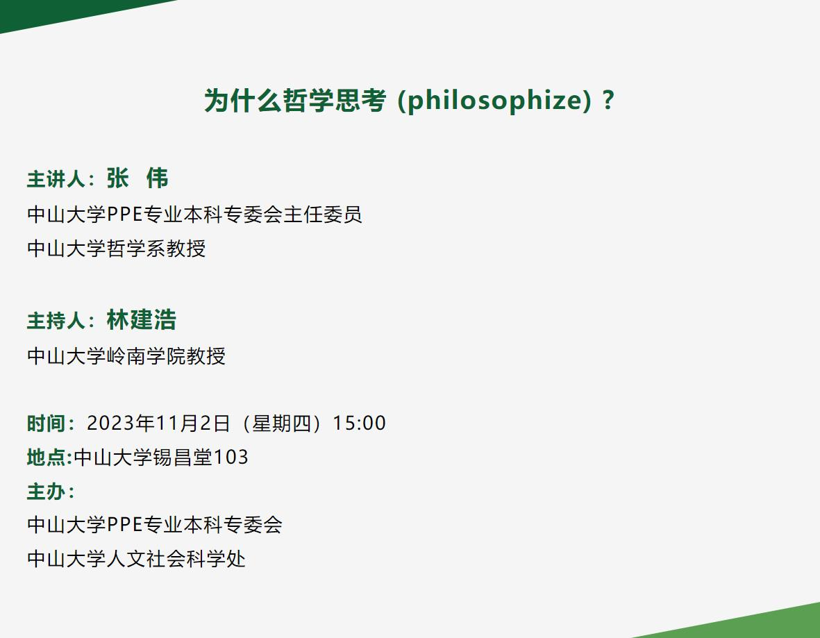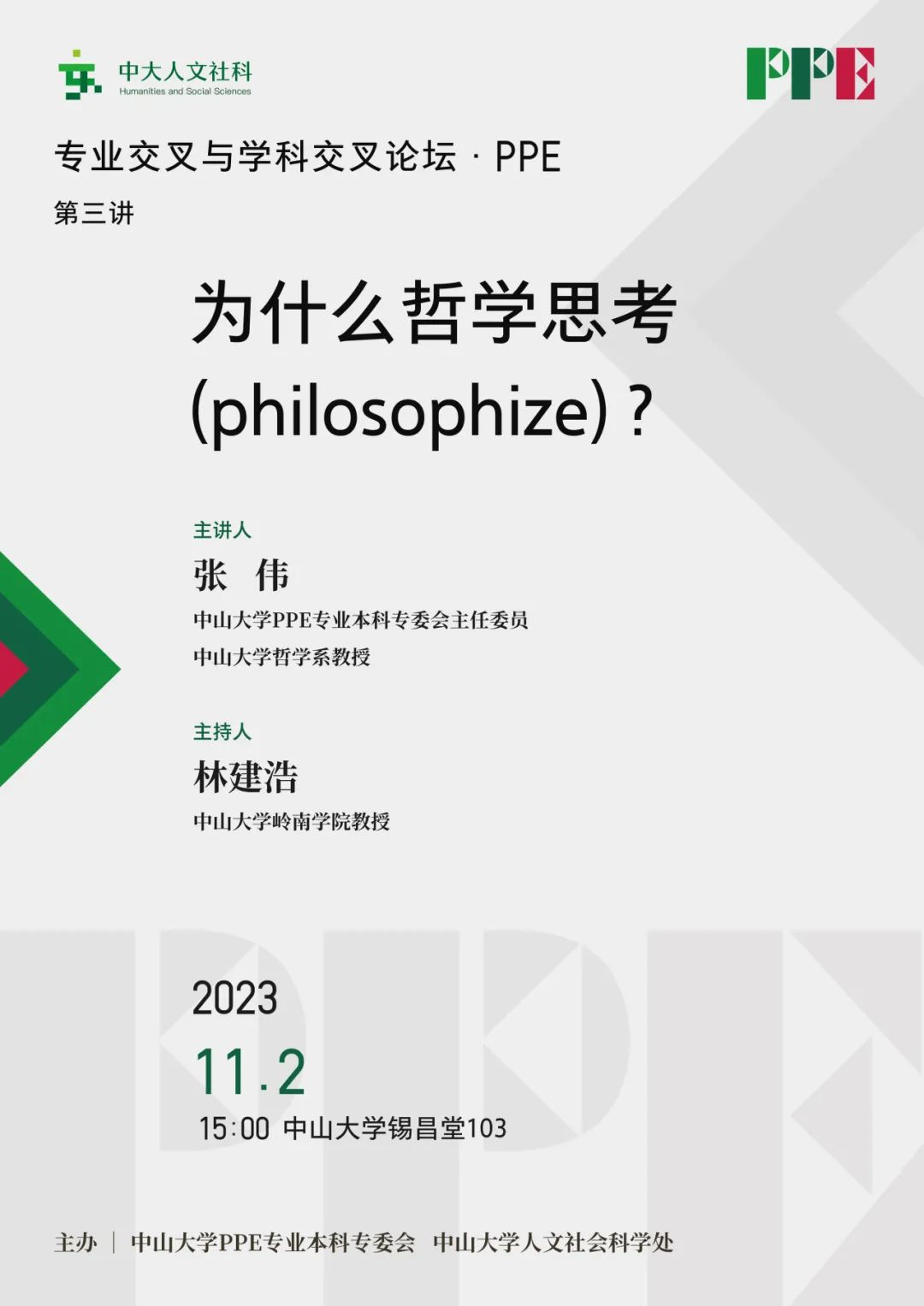 “专业交叉与学科交叉论坛·PPE”第三讲预告 | 张伟:为什么哲学思考 (philosophize) ?