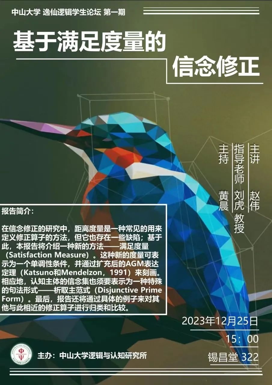 逸仙逻辑学生论坛第一期预告|赵伟:基于满足度量的信念修正