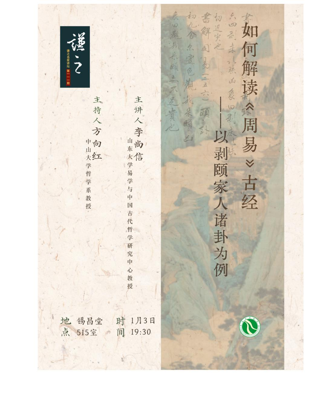 谦之名家讲坛预告 | 如何解读《周易》古经——以剥颐家人诸卦为例