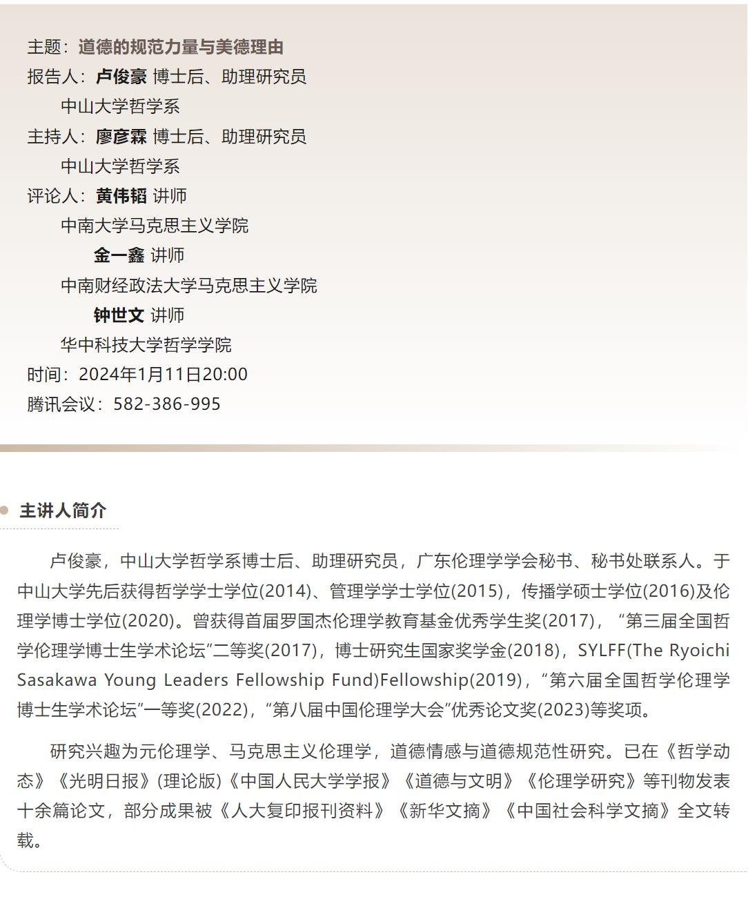岭南青年哲学沙龙预告|卢俊豪:道德的规范力量与美德理由