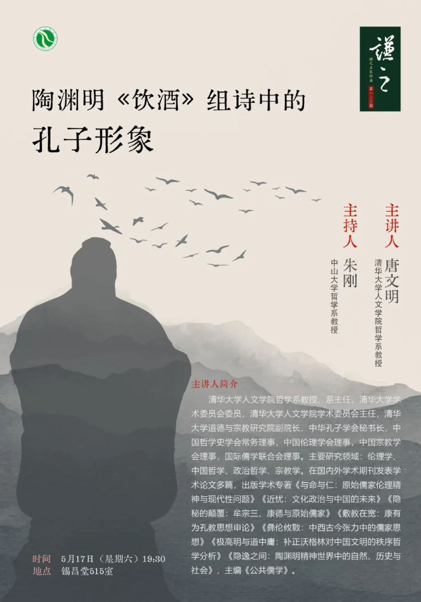 谦之名家讲坛预告|唐文明:陶渊明《饮酒》组诗中的孔子形象