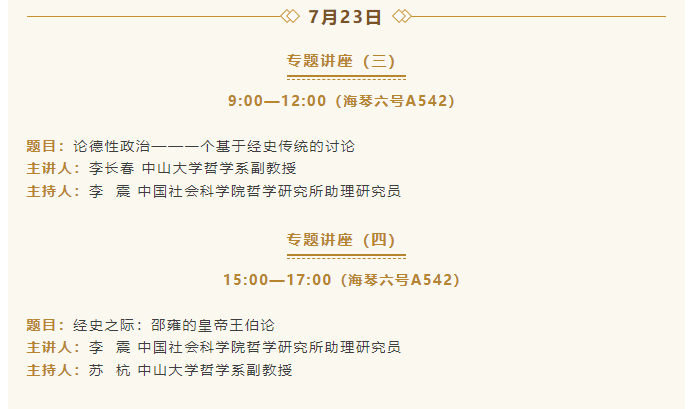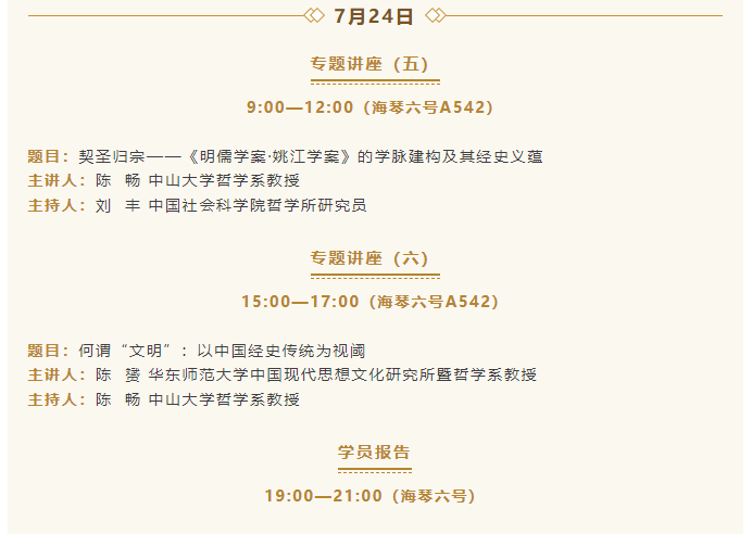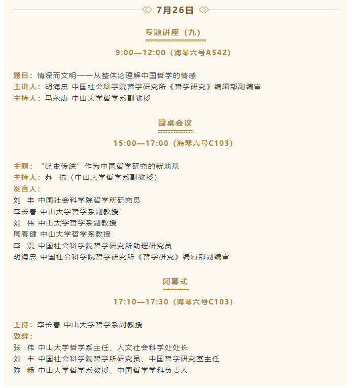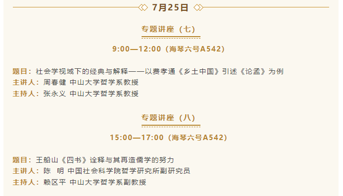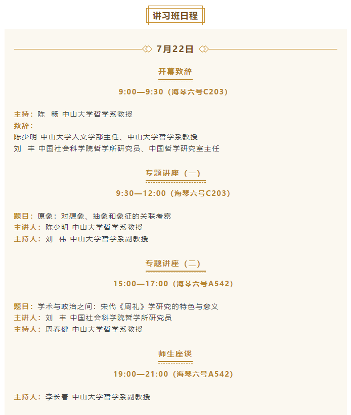 导航痕迹 yl88858永利集团哲学系 活动预告 | 经史传统——2025年中国哲学暑期讲习班议程 活动预告 | 经史传统——2025年中国哲学暑期讲习班议程 发布日期:2025-07-20 活动时间 2025年07月21日 14:00 - 2025年07月27日 12:00