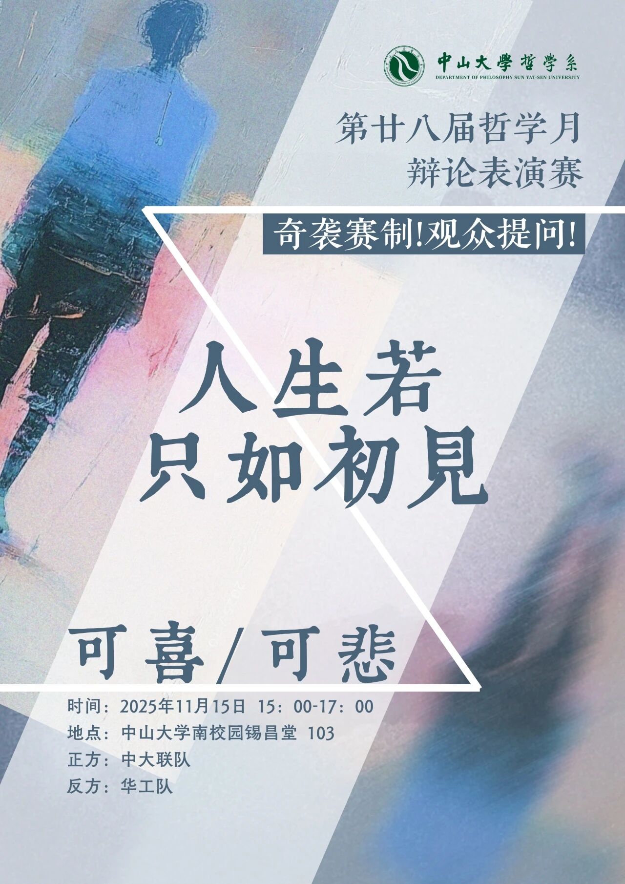 第28届哲学月辩论表演赛,我们荣幸邀请北京师范大学珠海校区华南理工大学的辩论精英,与yl88858永利集团的辩手联袂出场。本届赛事,我们将从【科学哲学】的宏大命题,辩至【人生初见】的幽微情感,以逻辑为舟,以言语为桨,航行于哲思的无垠之境。