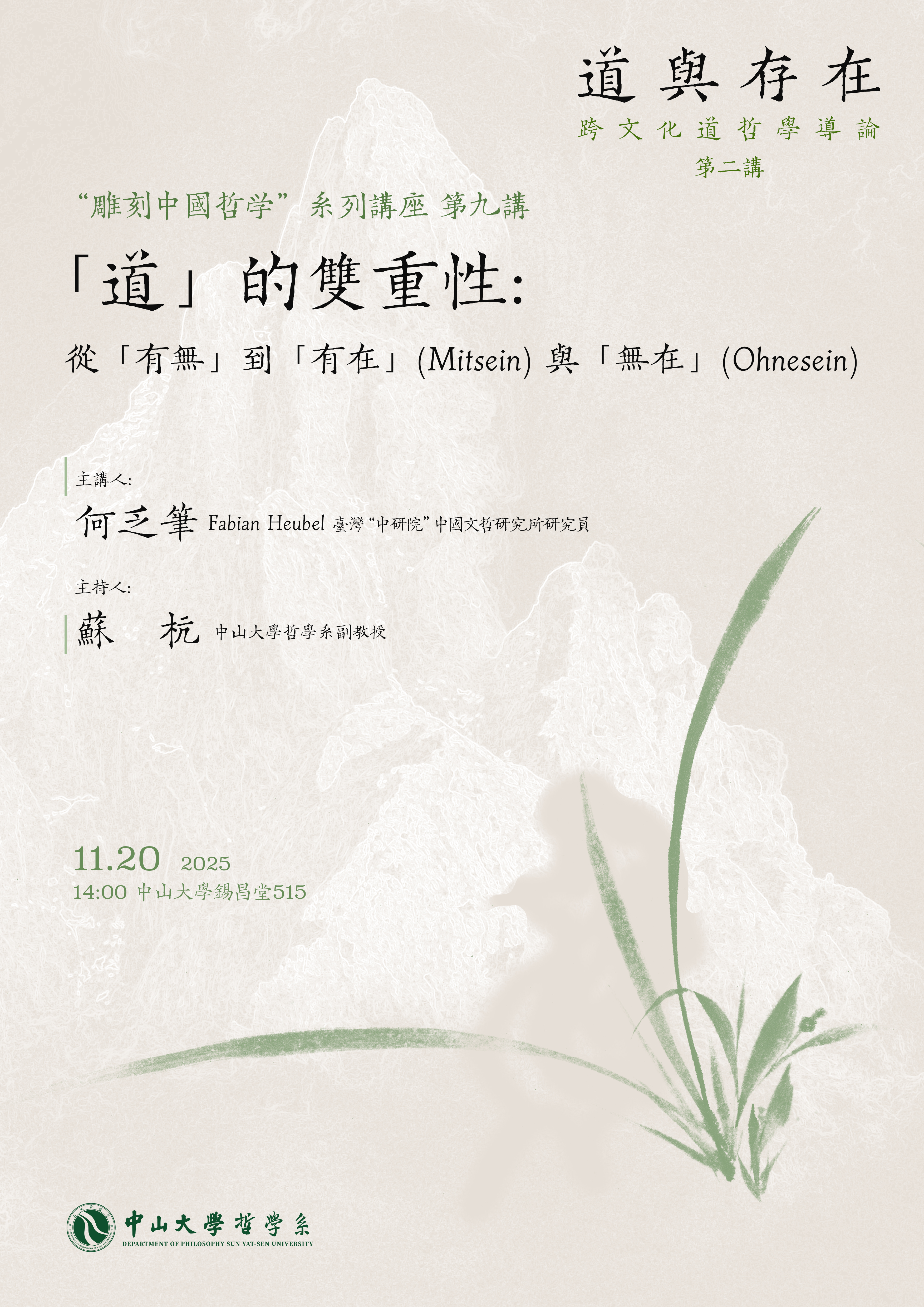 “雕刻中国哲学”系列讲座第九讲预告丨「道」的双重性:从「有无」到「有在」(Mitsein)与「无在」(Ohnesein)