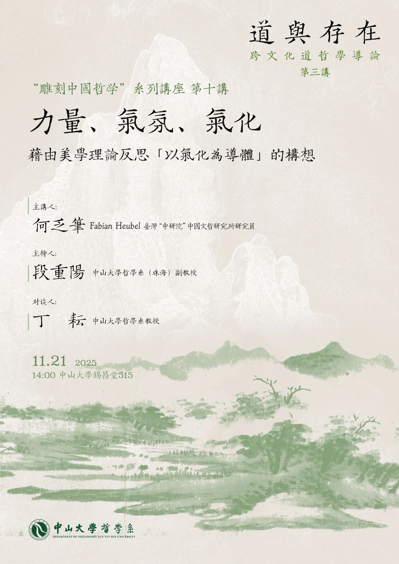 “雕刻中国哲学”系列讲座第十讲预告丨何乏笔:力量、气氛、气化:藉由美学理论反思「以气化为道体」的构想