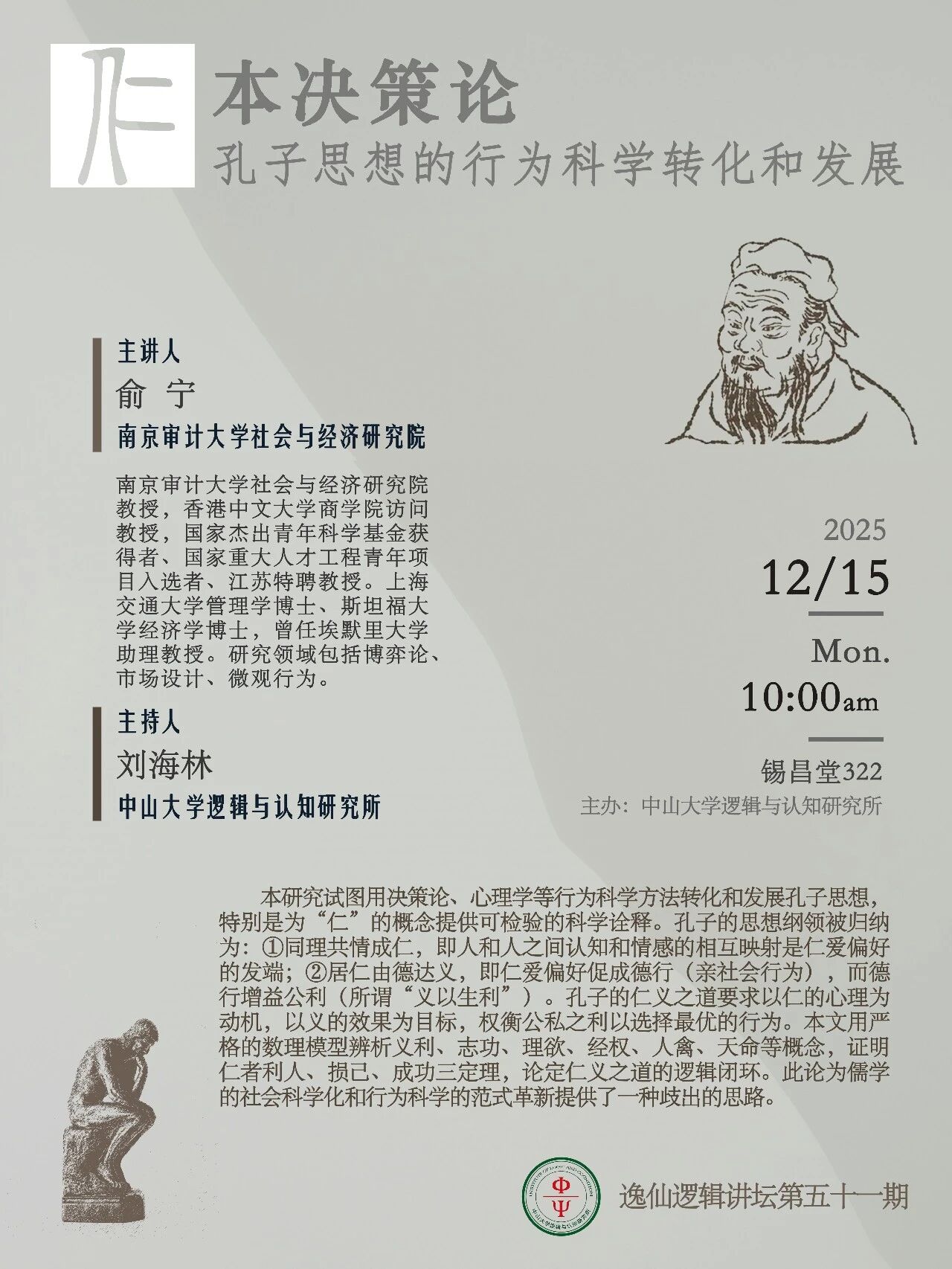 逸仙逻辑讲坛第五十一期|俞宁:仁本决策论:孔子思想的行为科学转化和发展
