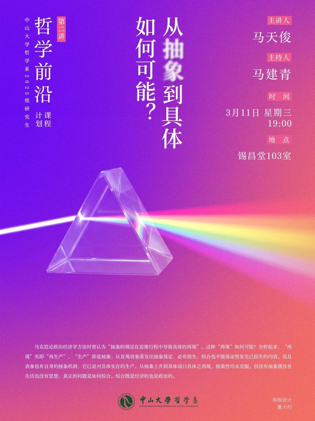 “哲学前沿”讲座第二讲预告 | 马天俊:从抽象到具体如何可能?