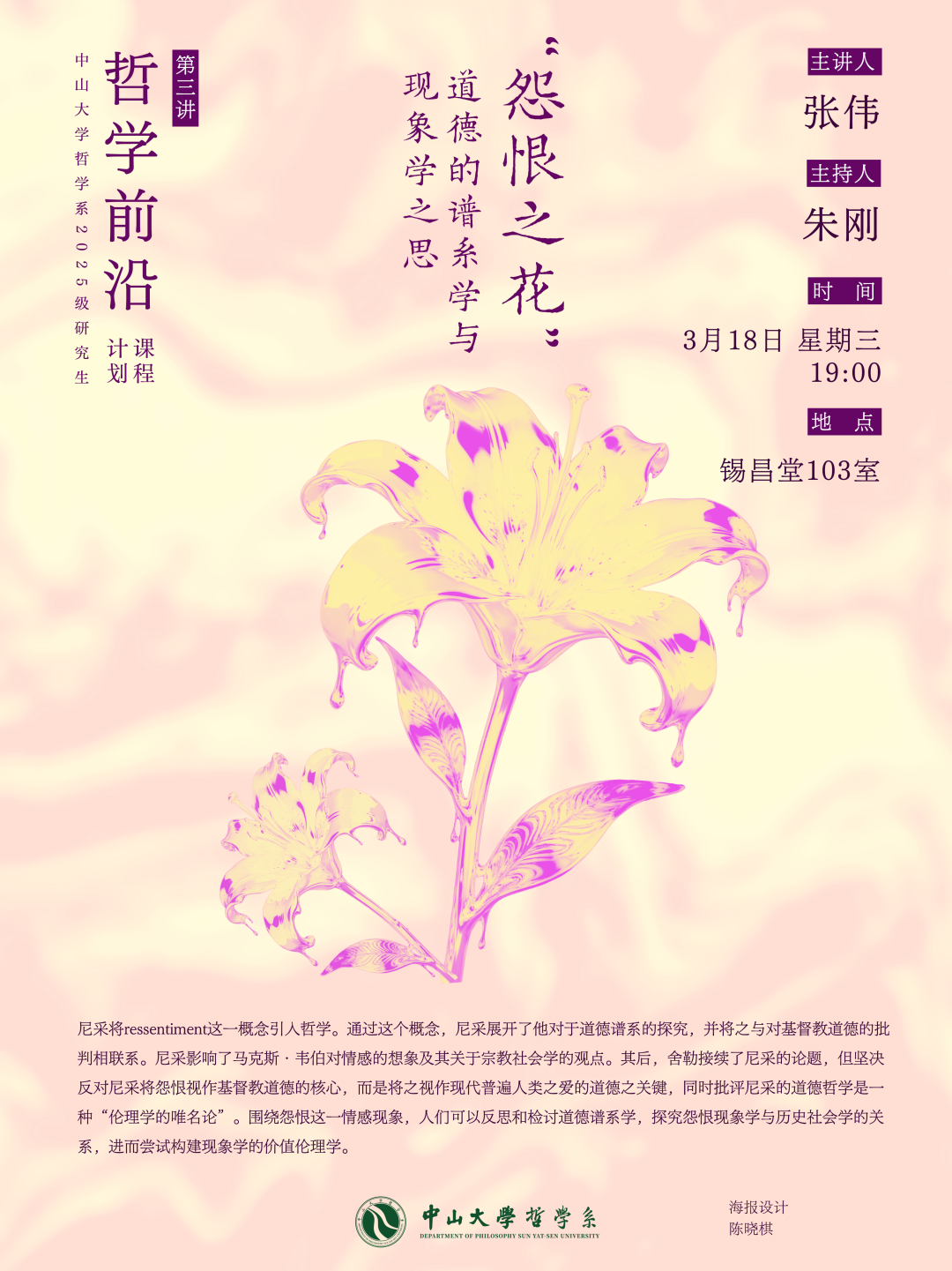 “哲学前沿”讲座第三讲预告 | 张伟:“怨恨之花”:道德的谱系学与现象学之思